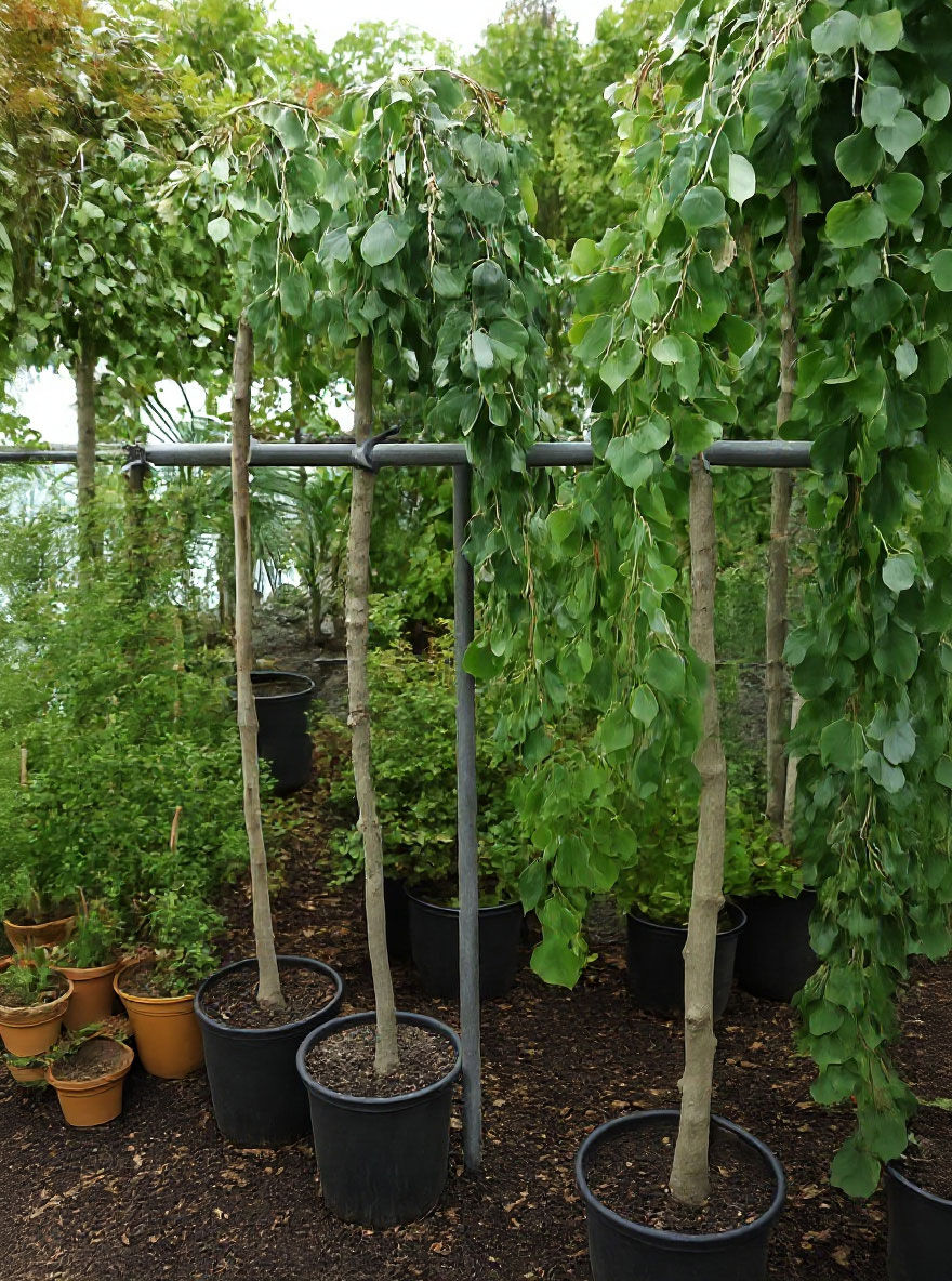 Der hängende Katsurabaum wird zwischen drei und 7 Meter breit, er benötigt somit genügend Platz, um in seiner ganzen Pracht zur Wirkung zu kommen. In der Höhe erreicht das Judasblatt Pendulum bis zu 10 Meter.