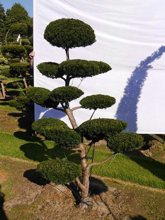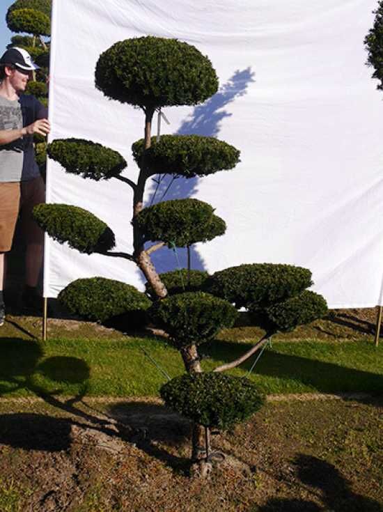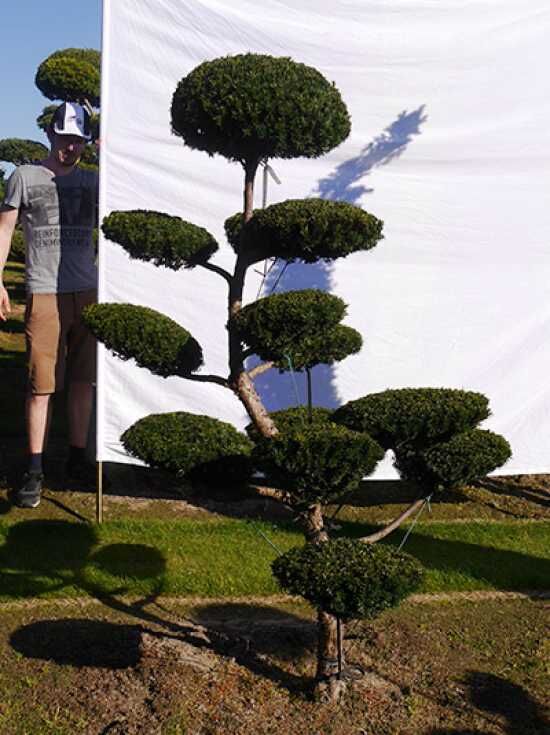 | Eigenschaften: | Die Taxus media 'Hillii' H: 190 cm B: 120 cm / Garten-Bonsai (0192) ist eine der gern gewählten Varianten als Basis für Formgehölze. Diese Gartenbonsai tragen im Gegensatz zur Taxus baccata keine Früchte. Absolut schnittverträglich, extrem winterhart und standorttolerant. Ein Formgehölz, dass sich sehen lassen kann.. |