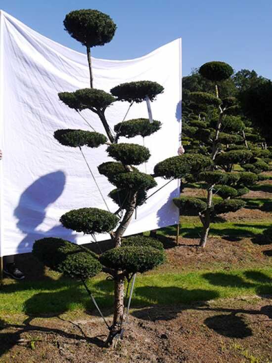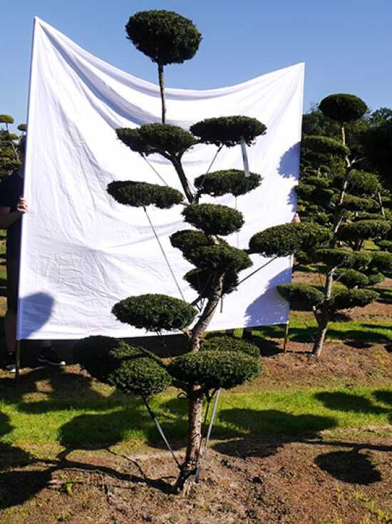 Eigenschaften: | Die Taxus media 'Hillii' H: 240 cm B: 130 cm / Garten-Bonsai (0101) ist eine der gern gewählten Varianten als Basis für Formgehölze. Diese Gartenbonsai tragen im Gegensatz zur Taxus baccata keine Früchte. Absolut schnittverträglich, extrem winterhart und standorttolerant. Ein Formgehölz, dass sich sehen lassen kann. |