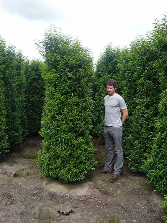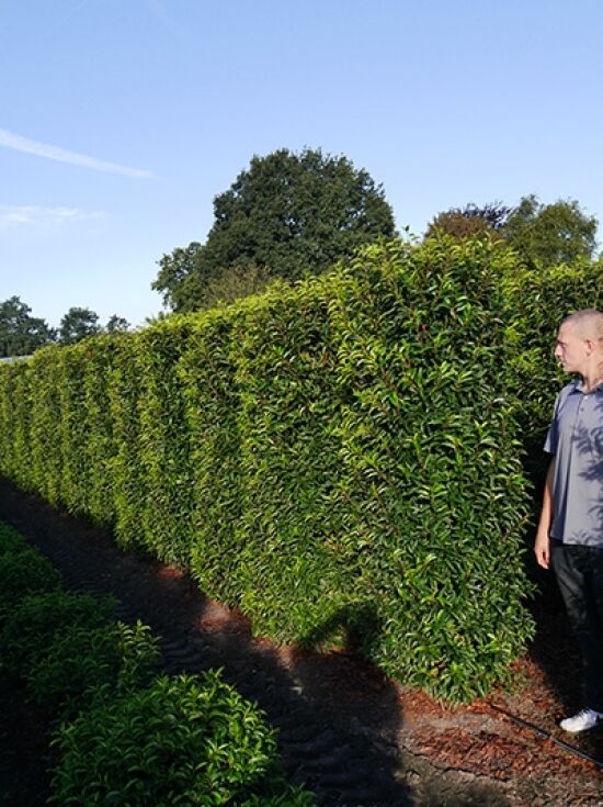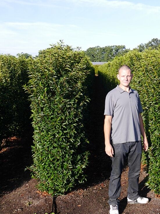Die immergrüne Heckenpflanze Prunus lusitanica 'Angustifolia' erreicht eine Wuchshöhe bis zu 4 m und eine Wuchsbreite bis zu 3 m. Aufgrund dieser Wuchseigenschaften ist die Anpflanzung einer hohen und schmalen Hecke ideal umsetzbar.