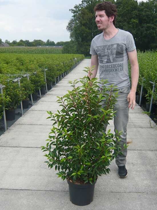 In unserem Shop bieten wir Ihnen den Prunus lusitanica ‘Angustifolia’ in verschiedenen Größen an, damit die Wahl der Sorte auch Ihren individuellen Bedürfnissen und Vorstellungen entsprechen kann. Somit bleiben hinsichtlich der perfekten Größe keine Wünsche offen! Generell wird die 'Angustifolia' bis 4 m hoch und bis zu 3 m breit. Das kleinste Exemplar ist 40 bis 50 cm groß und wird als Containerware in einem 3 Liter Container geliefert. Bei der größten Größe handelt es sich um einen Kirschlorbeer mit einer stattlichen Wuchshöhe von 350 bis 400 cm. Dieses Exemplar wird mit einer Drahtballierung ausgeliefert. Da der Portugiesische Kirschlorbeer 'Angustifolia' mit einem jährlichen Zuwachs von bis zu 40 cm recht schnellwüchsig ist, wird Ihre Heckenpflanze bereits nach kurzer Zeit eine optimale Größe verzeichnen. Aufgrund dessen zählt der Prunus lusitanica 'Angustifolia' zu den schnellwachsenden Heckenpflanzen.