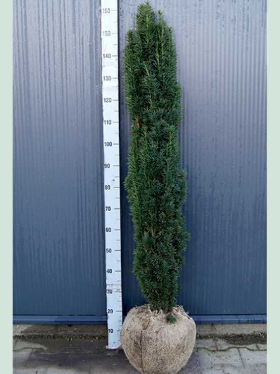 Die Schmale Säulen-Eibe bieten wir in unserem Shop in vielen verschiedenen Ausgangsgrößen an. Wir beraten Sie gerne, um die ideale Größe abgestimmt auf Ihre Bedürfnisse zu finden. Das kleinste Exemplar steht mit einer Größe von 50-60 cm im 5-Liter Container zur Verfügung. Das größte Exemplar finden Sie in unserem Shop mit einer imposanten Größe von 400-450 cm Solitär mit Drahtballierung. Informationen zu den verschiedenen Wurzelverpackungen finden Sie auf unserem Blog zum Nachlesen. Generell erreicht die Heckenpflanze eine Wuchshöhe zwischen 4 bis 8 m und eine Wuchsbreite zwischen 1,4 bis 1,7 m. Bei einem jährlichen Wachstum von ca. 20 cm, gehört die Pflanze eher zu den langsam wachsenden Exemplaren. Eine Auflistung von schnellwachsenden Heckenpflanzen finden Sie hier.