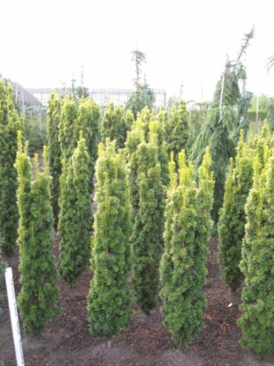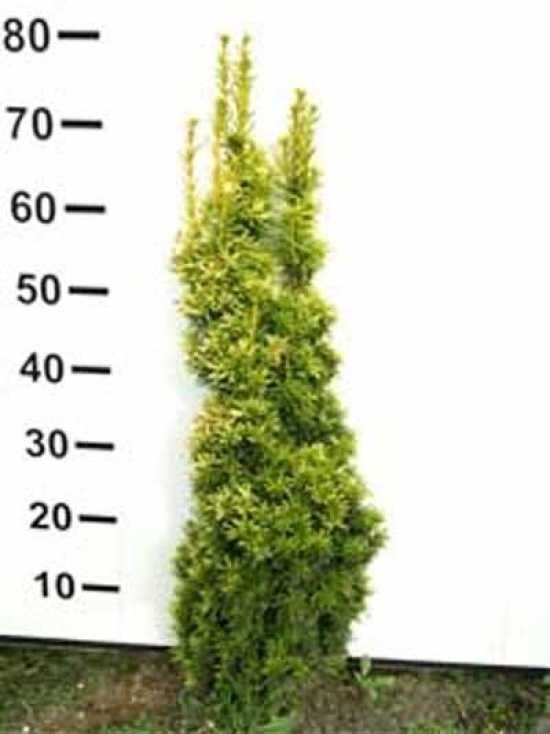 - Das kleinste Exemplar von der Gelben Säulen-Eibe ist 60-80 cm groß und wird mit Ballierung geliefert.