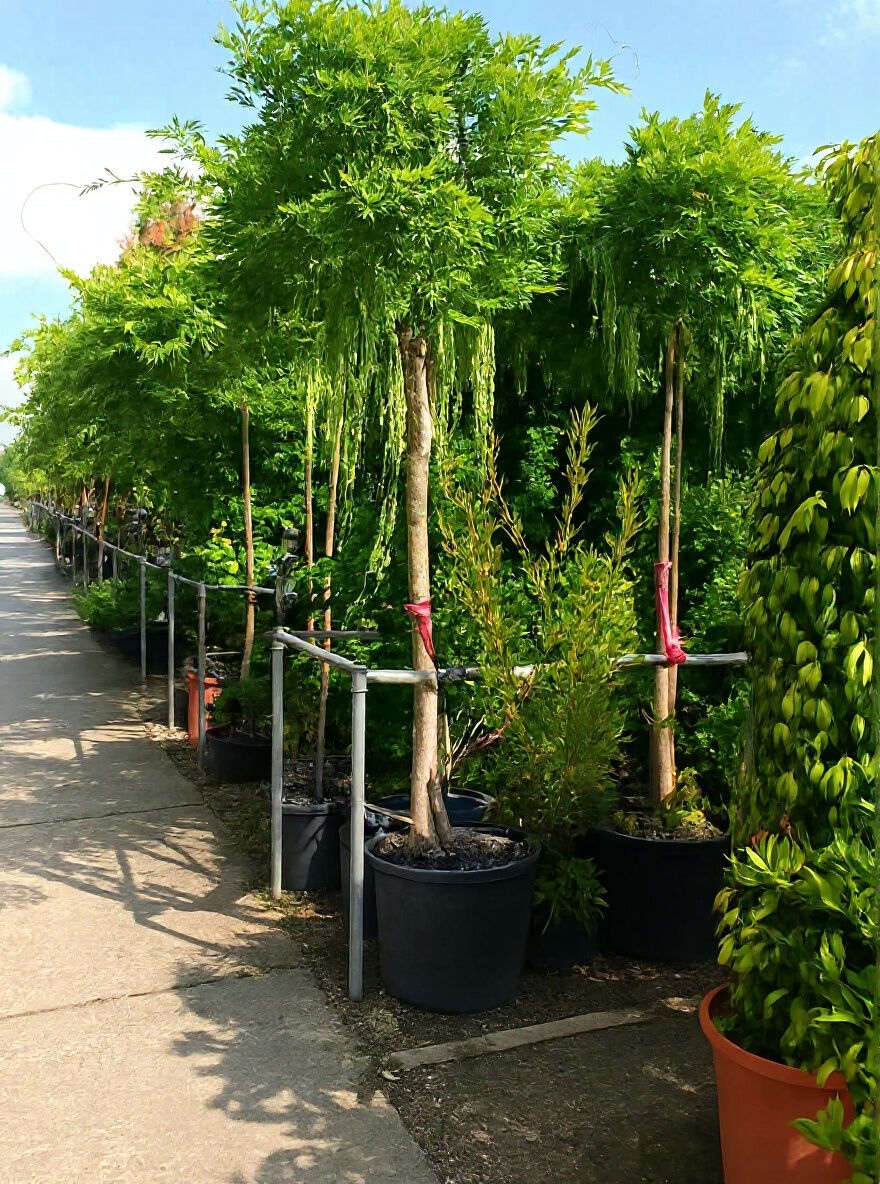 Guten Tag! Wisteria (Glyzinien) sind kräftige Kletterpflanzen, die viel Platz benötigen, um sich gut zu entwickeln. In einem großen Topf können sie durchaus gut gedeihen, aber es ist wichtig, den richtigen Topf und die richtige Pflege zu wählen, damit die Pflanzen ausreichend Raum für ihre Wurzeln haben. Der Topf sollte mindestens 40–50 cm Durchmesser und mindestens 40–50 cm Tiefe haben, besser noch etwas größer. Wichtig: Stellen Sie sicher, dass der Topf regelmäßig gewässert wird, aber Staunässe vermeiden. Flüssigdünger oder Langzeitdünger für Kletterpflanzen helfen, das Wachstum zu fördern.