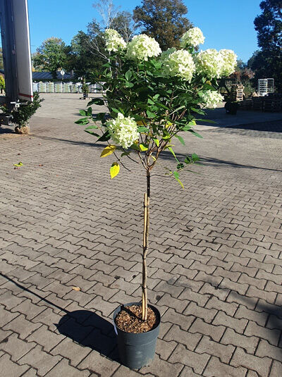 Hallo, ich habe im Herbst von Ihnen die Rispen-Hortensie Limelight' 'Schirmform' / Hydrangea paniculata 'Limelight 200-225 cm eingepflanzt. Meine normalen Rispenhortensien schneide ich Anfang März auf 3-4 Knospen zurück. Wie handhabe ich das bei dem wunderschönen Hochstamm? Wieviel schneide ich hier zurück, um die schöne Form zu wahren? Vielen Dank und herzliche Grüße Greta G.
